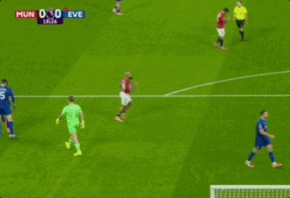 这张红牌仿佛罚错了对象。少一人作战的埃弗顿反而在第29分钟打破僵局。霍尔中路拿球盘带至禁区,轻松摆脱曼联后卫约罗的防守,兜出一脚精彩的弧线球,直挂球门右上角。